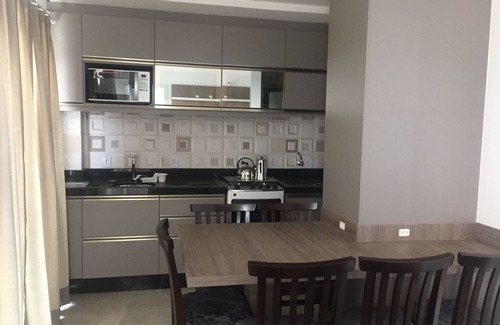 Aptos high standard on the beach of pinheira all new with two bedrooms, air, living room and kitchen, bathroom with luxury shower and mirrored cabinets, living room with sofa and tv, full kitchen with all appliances, microwave, duplex refrigerator, stove 4 burner, domestic utensils, balcony with barbecue, washing tank, communal washing machine, curtains, luxury walls, fully secure