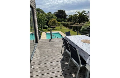 Listed gîte with swimming pool and games room near the sea is located in Nevez. Listed gîte with swimming pool and games room near the sea provides accommodation, featuring Pool, Private Pool, Security/Safety, among other amenities. This House features Pool, Private Pool, Security/Safety, to make your stay a comfortable one.
