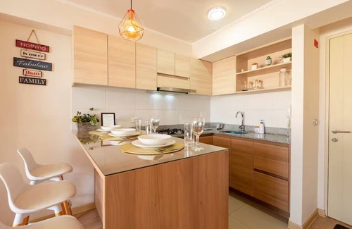 ✨ The apartment includes a cozy living room decorated with adorable llama plushies, a fully equipped kitchen with a charming integrated dining bar, a master bedroom with a queen-size bed and walk-in closet, a full bathroom, and a private terrace that runs along the unit — perfect for relaxing and enjoying the view. It also allows the apartment to have plenty of natural light.