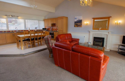 Access to the lodge is via some steps (8). Internally, there are a few steps up to the lounge area. All bedrooms are on a lower floor and are accessed by a flight of stairs. The lodge isn't ideal for someone with mobility impairments or who would experience a challenge with stairs.