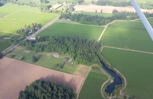 We are on 18 acres with a private airstrip, a forest and a creek located in Western Washington a few miles west of Lynden, 16 miles to the Bellingham airport and 5 miles to the Canadian border.