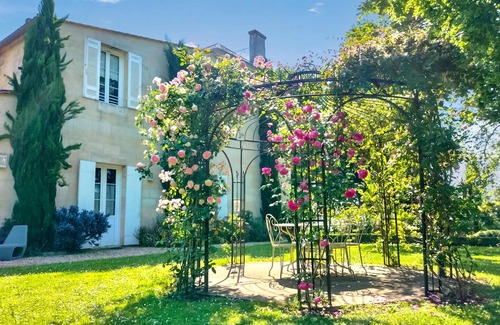 On the banks of the Gironne, this inviting apartment welcomes you with bright rooms and a comfortable, tasteful interior on a spacious property. Spend a soothing getaway for two here with lovely activities and cozy evenings when you return from your adventures. The comfortable seating area invites you to sit together for a long time and review the experiences of the day.