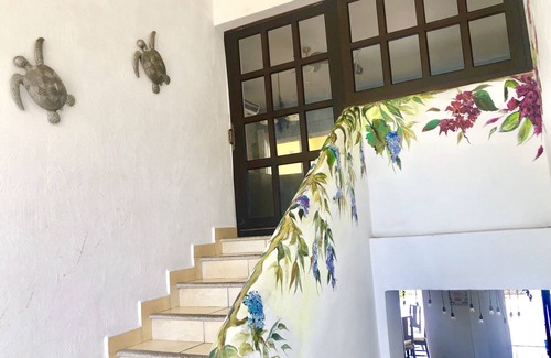 Perfect for large groups and celebration event.Itzayana (Gift of God in Mayan language) is a seven-acre property located on the Caribbean Sea, in the area of Masca, bordered by the beautiful beaches of Buenavista and the imposing Cordillera del Merendon forward.Has a very nice new ranch style Mexican Villa on two floors with spacious: porch, hall, billiard room, kitchen with breakfast bar, island, pantry, four terraces, guest bathroom, two suites with bathrooms, terrace with sea views, six bedrooms, with private bathrooms, air conditioning, video and games room, terrace. Large windows allow you to enjoy the lush vegetation, mountains, the sea and the beaches and let the sun flood happy every day.La Villa Boutique is decorated with murals painted by a renowned Honduran painter, to make each room a unique place. Since your arrival the lobby welcomes you with a view of the majestic pool and planters overflowing with flowers and a seamarine mural. Each bedroom has a flower name and so according to, its decoration and mura.. The kitchen will allow many share the best moments in cooking. Its imposing columns and vibrant Mexican colors, combined with the scent of the flowers that are everywhere, make the stay comfortable.The social area with two pools exquisitely decorated with glass mosaic designs, a great bar with TV, stereo with music of every kind and for every taste, the beds, the multicolored lights to enjoy great and make the best celebrations.The campfire area with its terrace invites you to enjoy delicious snacks, accompanied by a glass of wine also for roasting marshmallows. There are plenty of places to dance either on the terrace or on any of the sidewalks that surround widely throughout the area.We have a beatiful event room and a large open kitchen equipped with everything needed for barbecues, cooking in the wood oven and decorated with a mural of a colorful birds, and a large pantry.A unique place to enjoy with family and friends moments of complete privacy in an environment surrounded by lush vegetation with a variety of fruit trees, palm trees, colorful flowers, birds, sea birds and wild animals. An ideal venue for weddings, anniversaries, birthdays, bachelor parties, seniors trips, family reunions or friends place ...