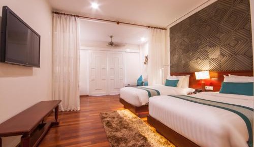 Lotus Blanc Resort offers a relaxing getaway in the heart of Siem Reap City, a convenient 10-minute drive to the famous Old Market (Phsar Chas) and the well-known Pub Street. It features an outdoor swimming pool, free WiFi access. The resort is only a 10-minute drive from Siem Reap International Airport. The UNESCO World Heritage Site of Angkor Wat Temple is just 5 mi away. Featuring a balcony, air-conditioned rooms are equipped with a personal safe, a flat-screen cable TV and a mini-bar. Rooms also include an electric kettle and a seating area. Private bathrooms offer a hairdryer and free bath amenities such as free toothbrush and toothpaste. Room service is possible. Slippers are also available in all rooms. Lotus Blanc Resort operates a 24-hour front desk that provides luggage storage, laundry and tour services. A fitness center and meeting/banqueting facilities are available. Guests can enjoy a pampering massage at its spa, or rent a vehicle to explore the area. A selection of Khmer dishes and international buffet are served at Le Blanc Restaurant. The Lobby Lounge offers afternoon teas and evening cocktails accompanied with live music by international bands.