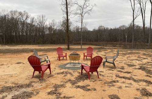 Kick back and relax in this calm, stylish space. This cabin is perfect for romantic getaway’s, anniversaries and staycations. Private patio with BBQ pit. Plenty of entertainment with a shared fire pit perfect for making s’mores!! Horse shoe throw game and corn hole toss!!