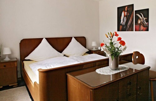 Holiday home Heidi-The spacious and rustic holiday alm (excellent with 4 stars) offers enough space for groups with 5 bedrooms that with tiled stove, baths on both floors, kitchen with corner bench, satellite TV, W-LAN and huge space in and Want to enjoy the best time of the year around the house. Parking spaces are available. A lawn, numerous leisure facilities on the property, such as table tennis, swing, slide, sandpit, game house, large meadow for playing football, campfire, as well as a brick grill, spoil you in our holiday paradise. At regular intervals there is fresh, crispy bread from our bakery. They also get fresh eggs from free -range chickens in the immediate vicinity and their products such as noodles and egg liqueur. For breakfast you can easily be supplied by our bread service.