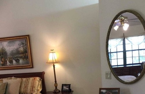 Central Florida home close to family-friendly activities. East and west coast beaches and the attractions in Orlando are a 60-90 minute drive. Senior neighborhood is safe and quiet. Duplex features an updated beautiful kitchen, vaulted ceilings, sunroom, garage and access to the community heated pool, shuffleboard and pool table. Good for couples, solo adventurers, and business travelers. No smoking or pets allowed