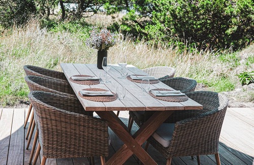 In Denmark's most beautiful village, Sønderho, you will find this unique holiday home. The house is built in a romantic style and is spaciously furnished, and you can look forward to two bathrooms, one of which has a whirlpool. The large kitchen-living room with its many windows is a bright and inviting space, and in one corner there is a cosy sitting area where you can relax.