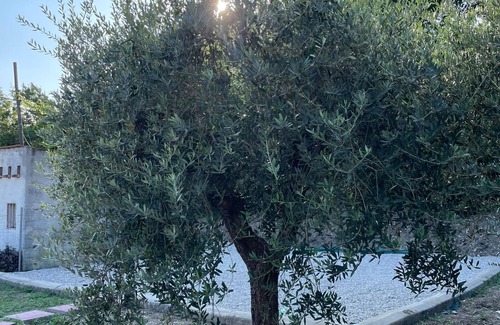 Guests have full access to the tiny house and the outdoor area around it, surrounded by olive trees. Entry is through the gate of the property, but the house and fenced areas are private. Guests simply pass through to reach their own dedicated space, separate and fully theirs to enjoy.