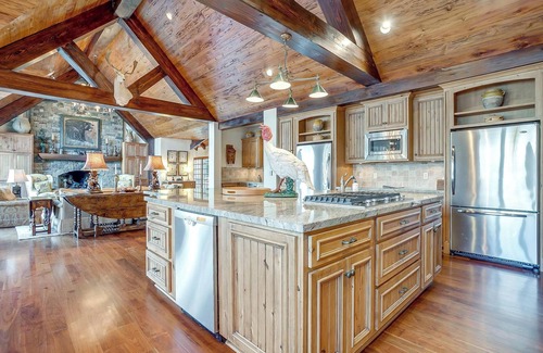 Step outside and discover an outdoor paradise. The infinity-edge pool, which overlooks the private lake, is an ideal spot for both relaxation and recreation. For a fee, the pool can be heated during cooler months, ensuring year-round enjoyment (heating must be requested at time of booking and a pool heating fee must be paid before heating will be scheduled).