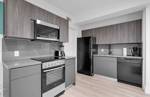 This apartment features an oven, stove, microwave, fridge, dishwasher, washer/dryer, toaster, blender as well as Keruig coffee machine.