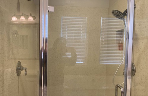 This suite boasts 2000 square foot features one beautifully designed bedroom with its own bathroom, a huge living room, a professional kitchen with island and built-in appliances, a dinning area and a sport room with billiard table. The master bedroom featuring a king-sized bed with two nightstands, a fireplace and a retreat with a desk, a chair and a crib. Master bathroom is newly remodeled with a 2-person jacuzzi-style tub and a separate shower. The living room featuring recliners, a sofa bed and a 75" smart TV. Extra beds may be provided upon request, please inquire with the host.