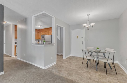 Stay in style in the eclectic city, ranked among the "Best Places to Live" by Money Magazine—Raleigh. This classy 960-square-foot (~89-square-meters) 2-bedroom & 1-bathroom apartment features 1 King Bed & 2 Plush Full Beds for your comfort, Lightning Fast Wifi, a Separate Workstation, a Fully Equipped Kitchen, and other Luxury Amenities—specially designed for your longer length stays!