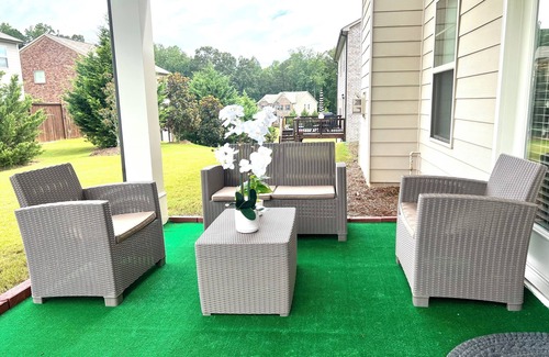 Kick back and relax in this calm, stylish space.This room has been tastefully decorated to make your stay pleasurable and comfortable. This private bedroom has a King size bed and a Smart TV. This room is on the first floor which makes it very accessible from the front door. This room also has a full Private Bathroom, it's features a relaxing shared patio, a shared kitchen,an extensive and beautiful backyard.This is a Smart home with keyless entry & security cameras to keep you safe.Off street parking is also available. Travelling nurse? This room is 6.0 miles from the Northside Hospital in Forsyth and 7.1 miles from Emory Johns creek Hospital in Gwinnett County.