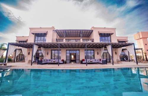 Discover a luxurious villa nestled in the heart of Palmeraie 7, just 20 minutes from Marrakech. This elegant residence features 6 refined bedrooms, 4 spacious living rooms, and 8 bathrooms offering breathtaking views of the surrounding mountains. Dive into our heated pool and enjoy the free parking. We guarantee a memorable experience where luxury and serenity harmonize to create unforgettable memories."