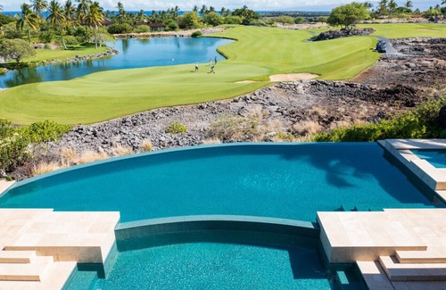 Pohinahina Place is your private resort retreat. With an incredible view of the Pacific Ocean and overlooking the 5th green of the Hualalai Golf Course, this property is located right in the middle of Hualalai Four Seasons Resort. This beautiful oasis is nestled on a cul-de-sac, has a private pool and spa and is a luxurious, serene getaway perfect for all types of groups including families.