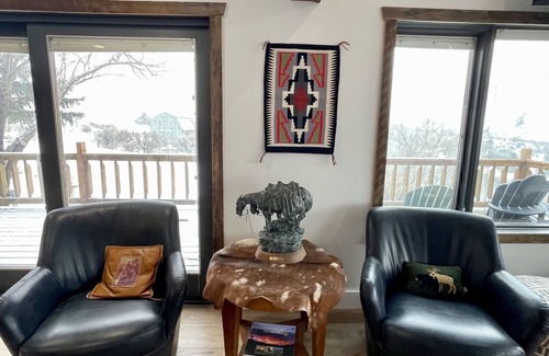Enjoy stunning views of the Gallatin and Absaroka Mountain Ranges and the majestic Yellowstone River from the wrap around deck or through the large picture windows from the main living and kitchen areas as well as the master bedroom upstairs. A sliding glass door leads to the southern facing deck with ample outdoor seating for enjoying sunsets. Handpicked original western artwork, bronze statues, large Indian style area rugs and original Yellowstone Park signs bridge the modern rustic décor to the home’s chic layout.