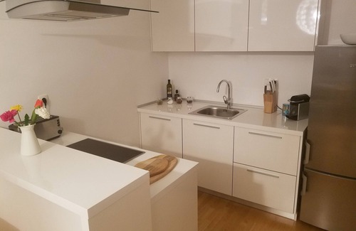 The apt has been newly furnished with all brand new furniture and appliances in January 2018. The kitchen is fully equipped with ceramic cooktop, electric oven, refrigerator and freezer. There is a breakfast bar with two stools and a big dining table with 6 chairs to seat the whole family. The living room features stone lining on the walls and elegant curtains on the windows for additional atmosphere. Two comfortable couches and two armchairs provide plenty of seating and lounging space for family and friends to relax watching TV, surfing the internet or reading books. In the evening, the sofas turn into additional beds for extra sleeping capacity. The two bedrooms each have a double bed and one bedroom has a tall wardrobe to hang and store your clothes. The apartment has independent heating, which can be remote controlled and programmed through a cell phone so that the place is warm before your arrival. Upon each guest changeover, the apartment is professionally cleaned, the beds are made with new sheets and fresh towels await you. Towels and linen can additionally be changed at guests' request.