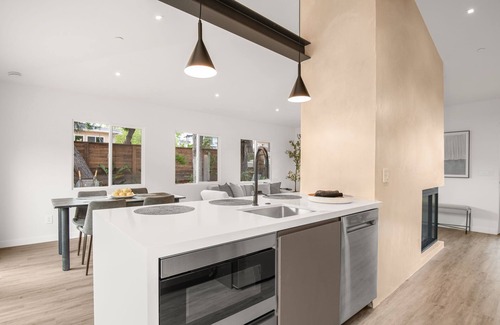 This beautifully appointed home and property has recently been completely renovated to the studs and turned into a gorgeous architectural masterpiece. The property is conveniently located 2.5 blocks to the beach path at West Beach and Shoreline Park. The spacious property is completely enclosed by a handsome redwood fence providing privacy and comfort. The interior of the home has been meticulously designed for form and function. Upon entry, guests will be greeted by exposed steel and wood beams anchored by a beautiful peninsula fireplace. The living room has all new furniture and features a 65" Frame 4K TV. The kitchen is equipped with dishwasher, french door fridge, an island with seating and all of the finest amenities. The dining area comfortably seats up to 6. The master bedroom features a plush king bed, vaulted ceiling and exposed wood beam, 50" 4K TV. The en-suite bath has heated floors, heated towel warmers, and Hansgrohe fixtures throughout. The secondary bedroom has a queen bed, garden views, with adjoining bath for easy access. The bath has a full size bathtub and heated towel warmer.