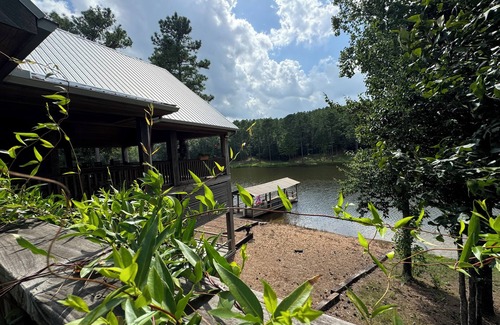 Offering TWO full, well appointed and stocked kitchens, a large main level living room, an additional downstairs living room or "Man Cave", covered deck overlooking the lake, and also a lower level covered patio with walk-out lake access. Enjoy your morning coffee or night cap with a view and while observing the local wildlife! Multiple large screen smart TVs are available in living rooms and bedrooms so you never have to miss a game or good binge watching session. Guests can truly unwind in the serene surroundings of this spacious and charming retreat. Offering 3 en-suites, everyone will find a cozy spot to relax. Around the home, you will find many interesting books and memorabilia of Historic Oxford and Ole Miss. The dock offers rockers to unwind, watch the ducks, or feed the fish. The "Morgan Cabin" includes 4 bathrooms with showers, toiletries, and hair dryers for added convenience for the whole crew.