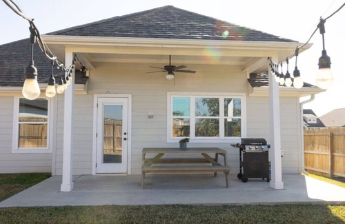 This brand-new retreat has everything you need for a great stay in Bryan,TX, perfect for everything from a business trip to an Aggieland big game adventure. Conveniently located 10 minutes from Kyle Field, Legends Event Center, and the Expo Center, you’re close to all the action while away from the roar of the crowd.