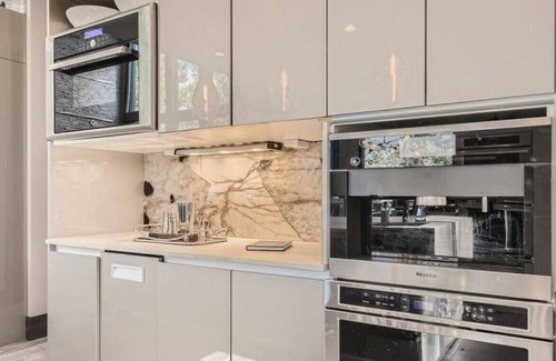 The gourmet kitchen is a chef's dream, equipped with top-of-the-line appliances and all the essentials to whip up delicious meals. Gather around the stylish dining table to savor your culinary creations while enjoying the panoramic mountain views.
