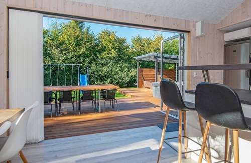 Holiday home with sauna and indoor hot tub, as well as a large outdoor hot tub located by a good bathing beach in Fjellerup. The holiday home has four good bedrooms and a large loft. The loft has a game console with a flat screen TV. There is a large living room to relax in. The house offers no less than 100 m2 of terrace, so you can always find a place in the sun. The 1247 m2 plot is equipped with a swing and two small soccer goals, and is also ideal for ball games. The house is located approx. 15 minutes from Djurs Sommerland. The house is clean, and the spa is well-maintained.A refundable deposit might be charged closer to your check-in date. The security deposit ensures a smooth stay and covers any additional services or consumption charges.This deposit covers utilities consumed during your stay and any additional services that may be taken.The final amount will be adjusted based on actual meter readings, actual usage of extra services, and any remaining balance will be refunded within 21 days after checkout.This deposit simply acts as a prepayment for charges that you would anyways pay for, ensuring a seamless stay and check-out experience.