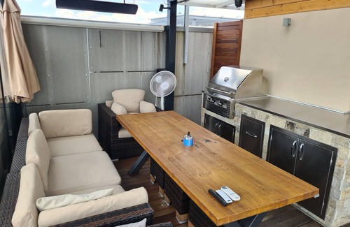 Luxury rooftop apartment with fantastic views! Your home away from home in the heart of Prague. This peaceful 3-bedroom apartment offers an excellent retreat for guests. With 1 queen bed and 2 full beds, 3 bathrooms featuring a jetted bathtub, this space is perfect for families or groups. Enjoy the convenience of amenities like roof top terrace with jacuzzi, sauna, BBQ, TV projector, floor heating, AC, fitness room, pet shower with hair dryer, WiFi and many others like in no other place!
