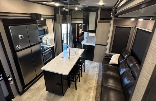 Are you looking for a Luxury camping trip in Southern Utah? This is a great experience 30 minutes away from Zion national Park! Minutes away from Toquerville falls, Quail Creek state Park and Sand Hollow Reservoir. RV camper is located at Settlers Junction RV resort. On site amenities include; Pool, fitness center, laundromat, pickleball, corn hole, playground, pavilion with barbecue, pet park and Clubhouse. Side x sides welcome and pet friendly.