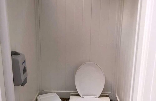 There is a toilet for urine and foot pump sink inside the tipi and outside of the tipi there is a separate shower and toilet for everything else. The shower has instant hot water and lasts a long time for an amazing shower experience. Both shower and toilet are outdoors and on your deck but enclosed for privacy. Each deck has furniture, umbrellas with misting system, lights, and fire pits. You can see the outdoor movie screen from each tipi deck.