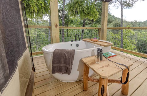 Luxury Tree Tent in Tuxedo Falls Resort with Private Waterfalls & Hiking is located in Zirconia. Luxury Tree Tent in Tuxedo Falls Resort with Private Waterfalls & Hiking provides accommodation, featuring Wellness Facilities, Barbecue/Outdoor Cooking, Parking, among other amenities. This Cabin features Wellness Facilities, Barbecue/Outdoor Cooking, Parking, to make your stay a comfortable one.