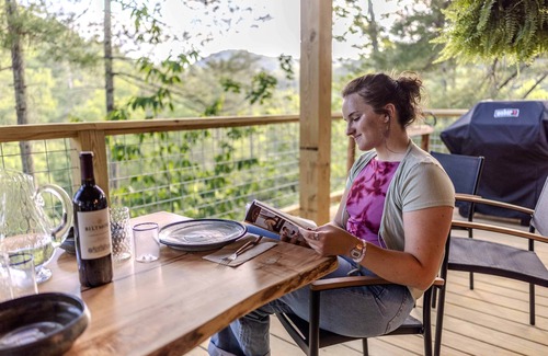 Luxury Tree Tent in Tuxedo Falls Resort with Private Waterfalls & Hiking is located in Zirconia. Luxury Tree Tent in Tuxedo Falls Resort with Private Waterfalls & Hiking provides accommodation, featuring Balcony/Terrace, Security/Safety, Sports/Activities, among other amenities. This Cabin features Balcony/Terrace, Security/Safety, Sports/Activities, to make your stay a comfortable one.