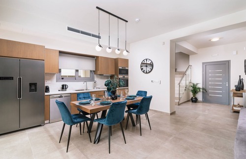 As you settle into this 3-bedroom, 3-bathroom rental, you'll find air conditioning and a desk. The kitchen is equipped with an oven, a stovetop, and a refrigerator, as well as a coffee maker, an electric kettle, and a microwave. And you won't have to pack extra clothes, because you'll also have access to laundry facilities.