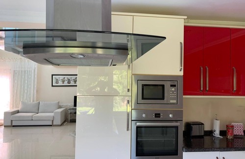 In Kemer, Göynük, 1800 m2, surrounded by 3 meters of walls and wire fences, with a 200 m2 usage area in a garden filled with pine trees and fruit trees, 13.5x7x1.80 meters total 92 m2 private pool, air-conditioned, furnished, Ultra luxury stone villa for rent with refrigerator, oven, microwave, dishwasher, gas hob, washing machine, weber gas barbecue, hot water, all kinds of comfort. It is in a hill position and is surrounded by pine trees so that it is not visible from the environment.