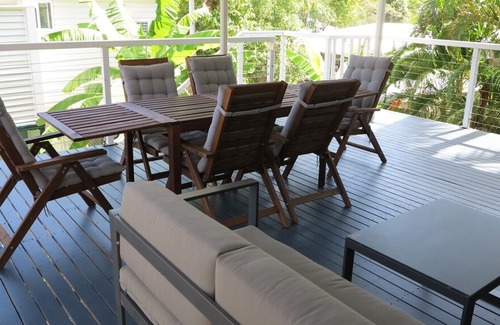 Newly renovated and furnished two bedroom unit close to popular Alma Bay in Arcadia. Well presented two bedroom unit has been recently renovated and refurbished throughout. *Self contained and fully airconditioned. Spacious kitchen, dining and living area. Separate bathroom and toilet. *Huge outdoor undercover deck great for entertaining with outdoor lounge and dining setting. *Magnetic Haven complex has a sparkling inground pool complete with entertaining area and barbeque. *The unit is set amongst tropical gardens and lawns and is just a very short stroll to the ever popular Alma Bay with its patrolled beach, great snorkelling, new adventure playground for the children, picnic tables and electric barbeques.