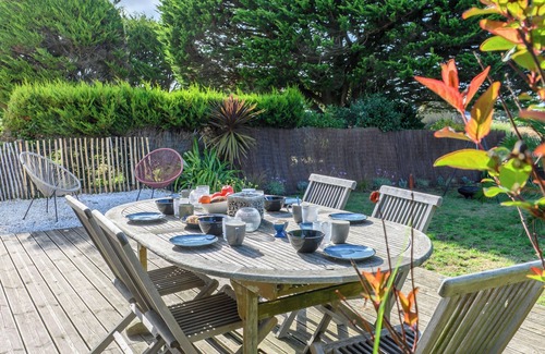 Plouhinec 9 km from Erdeven: 3-family house "Maison Er Menhir". In a hamlet, 600 m from the sea, 600 m from the beach. Private: garden (fenced), parking. Supermarket 3 km, restaurant 1.9 km, bakery 700 m, café 800 m, bus stop "Plouhinec centre" 5 km, sandy beach "Plage de l'Anse du Magouer" 4.1 km. Nearby attractions: Ria Etel 500 m, Maison de Saint-Cado 5 km, Erdeven 9 km, Carnac 15 km, Presqu'ile de Quiberon 29 km, Belle ïle en Mer, Houat, Hoedic. Please note: baby equipment (included).