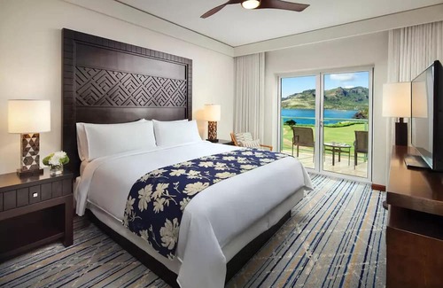 Learn to surf, snorkel, boogie board, or simply relax beachside in the sun at the gorgeous crescent-shaped Kalapaki Beach, just a few minutes from the resort. Take a dip in the resort's sparkling two-story pool or play a round of golf at the on-site championship golf course. Guests will also enjoy convenient access to the adjacent Kauai Marriott Resort’s tennis courts, day spa, and restaurants.