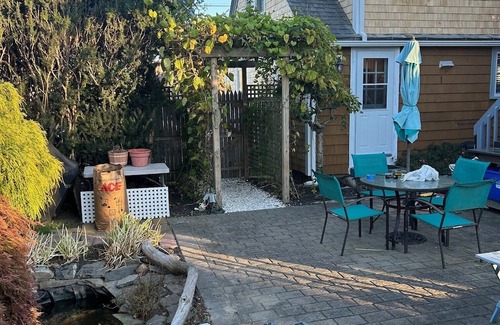 Welcome to Matunuck Village, walk to East Matunuck State Beach, private cove and Deep Hole Surf break. One bedroom unit has full bed plus open kitchen/living area with pull out Q couch. Full bath.360 degree ocean/Salt Pond views. Private entrance Shared fenced yard w/ Rooftop deck w gas firepit, back yard w/fire pit. Patio w/koi pond. Use of grill, outdoor shower, 2 SUP's, beach chairs. Ocean Mist/Pub/Matunuck Pizza and Surf shop all within walking distance. Westerly and Newport 20 minutes