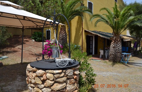 The accommodation comprises living room, bedroom and a smaller room also converts to a double or two single beds, bathroom and kitchenette. In case you need a sofa bed in the living room allow two guests suitable accommodation. The covered terrace with sea views features a dining area and sitting area, separated from the outside by a grid that allows you to breathe the sea air. And to live the interior space to the open. But what makes you appreciate most is its proximity to the beach and the sea. Not more than 20 m. In the morning instead of taking a shower you can immerse yourself in a small fresh natural pool and restful, where a hot spring in the middle of the sea will make you just fine. Its tranquility is disturbed only by the cooing of doves in the pine forest behind. A curtain of multicolored oleanders schermerà your privacy while two beautiful palm trees and an olive complexion will watch over your holiday period. The parking place at 5 meters from home will allow you to keep tabs have your loyal companion. Incredible is not it? And I have not described the surrounding area! You will see it yourself. We wait.