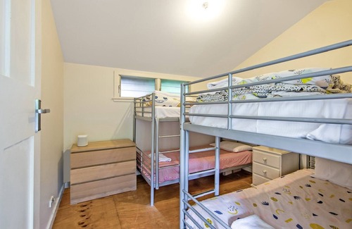 Perfectly positioned along the water's edge at Patonga Beach, this unique and appealing holiday home is a genuine fisherman's cottage with open plan living and dining area. Featuring a 3-bedroom extension, polished timber floorboards and loads of nostalgic charm, Mi Casa (Spanish for 'my place') is the perfect weekender or holiday house. This television-free abode means you can truly unwind and surround yourself with nature. Mi Casa is positioned on Patonga Creek Inlet where you can entertain yourself with a spot of fishing, boating and swimming. Relax and unwind as your cares melt away.. take a walk along the pristine Patonga beach, a bushwalk to Pearl Beach or enjoy a glass of wine and a meal at Patonga Beach Hotel. Master bedroom contains a queen bed and free-standing robe, Bedroom 2 has a queen bed. Bedroom 3 contains two single bunk beds. Bedroom 4 contains two single bunk beds.