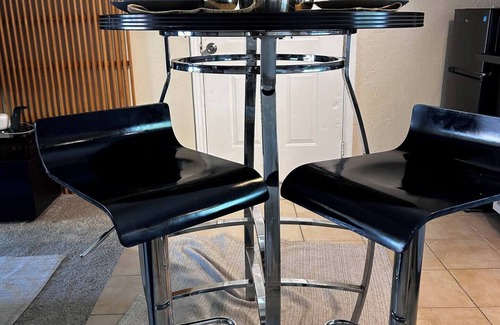 Welcome to your private mid-century modern guesthouse in Dallas’ Bishop Arts District. This 2-bed, 1-bath second-floor space offers total privacy and tranquility. The spacious master features a king orthopedic bed and flat-screen TV, while the living room has a modern sectional and 65” TV. Enjoy a dedicated office, a compact kitchenette with essentials—including a Keurig and complimentary coffee—and natural light from eight large windows. A chic, serene escape awaits.