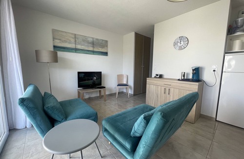 Mini villa 55 m2 with terrace equipped 16 m2 (gas barbecue, table and chair, parasol and deckchair). Corner living room Tv corner cooks, room with bed doubles 160 and a room with single beds 90 rapprochables. Bathroom and toilet separates. Heated pool from April to October 28 'shared green spaces numbered parking space, secure residence. Residence located on the heights of Bonifacio surrounded by the maquis.