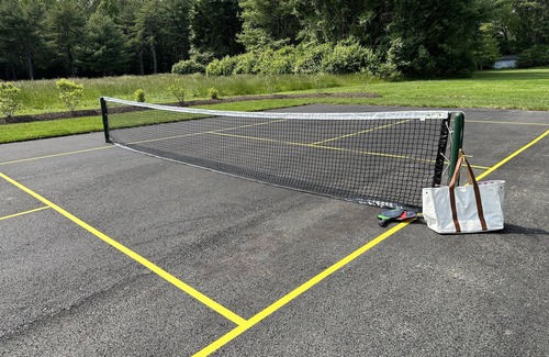 The grounds are lush with mature landscaping, plenty of privacy, centuries-old shade trees, and room to roam for the little ones. Enjoy the new gazebo: a perfect backdrop to capture some treasured family photos! The newly restored barn supplies endless opportunities for your kids or kids-at-heart with game tables, air hockey, and foosball. Work off the crab cakes and ice cream with the Vectra gym and rowing equipment! The pool is flanked by a pool house complete with a changing area and two full baths for showering, in addition to a kitchenette for your snacks and favorite beverages. The hot tub and pickle ball court are open year round for your enjoyment as well.