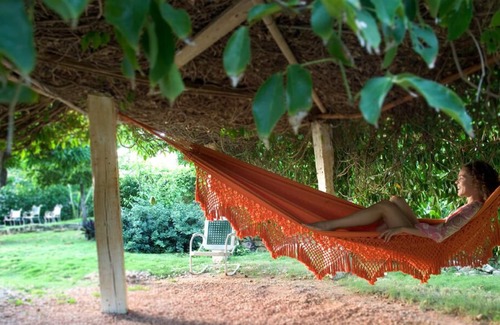 Behind the house, take a siesta in the hammock under the jade vine arbor or cool off in the outdoor shower under the shade of the fruit tree.