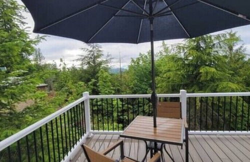 Take a break and unwind at this peaceful oasis woodland retreat near the Elwha River in Port Angeles. Our newly constructed elevated cabin features a comfortable queen bed and a private attached bathroom. Step onto the expansive deck with breathtaking views of the Strait of Juan de Fuca and the Pacific Ocean. Nestled on a 4-acre parcel, this serene oasis is conveniently located just 15 minutes from downtown Port Angeles, yet enveloped by lush forest, offering ultimate privacy and tranquility.