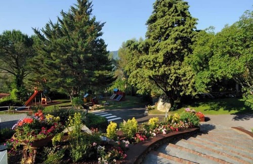This tourist village, located in a quiet and panoramic position in the hinterland of Albenga, arranged in terraces, consists of bungalows, chalets/mobilehomes and a part dedicated to campers. The bungalows are rustic, cosy and functional, furnished in a simple style and partly renovated. They have a bathroom with shower, small fridge, veranda furnished with 2 chairs, kitchenette with stove with 2 burners. The village also has large gardens and a large panoramic terrace and a paid shuttle bus to the beach in July and August.