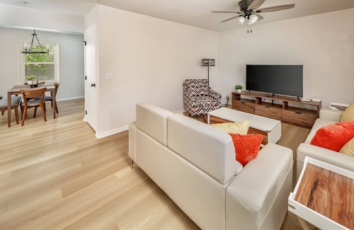 This newly renovated 3 BR Moline ranch home is fully equipped and conveniently located for easy access to the Quad City Airport, John Deere Road, Avenue of the Cities, and Bettendorf/Davenport, IA. Ready for your personal or business stay, this home features new furniture, kitchen, and flooring throughout the main level. The main bathroom features a new tub/shower combination, and double vanity sink. There is an additional full bathroom in the basement with a new tiled shower. Relax and unwind while nestled in front of the 55" smart TV, or bring your own device and connect to fast whole home wifi. Welcome to Moline and the entire Quad Cities!