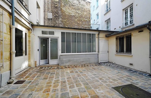 The apartment is located in the courtyard on ground level for easy access. After passing the glass door with second code you will find your door with large wall of architectual windows.