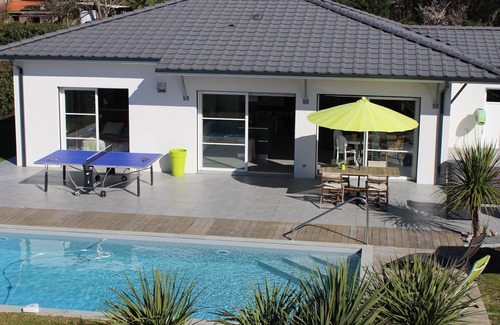 Modern villa with swimming pool 15 minutes from Bordeaux in a quiet area is located in Gradignan. Modern villa with swimming pool 15 minutes from Bordeaux in a quiet area provides accommodation, featuring Internet, Laundry, Balcony/Terrace, among other amenities. This House features Internet, Laundry, Balcony/Terrace, to make your stay a comfortable one.