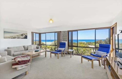 With ocean views from the lounge and two of the three bedrooms, you can relax and enjoy the surrounds all year round. Open plan lounge/dining/kitchen make it a terrific destination for a family holiday. Features include sheltered rear deck and quiet bush setting on a large block with plenty of room for kids to play.